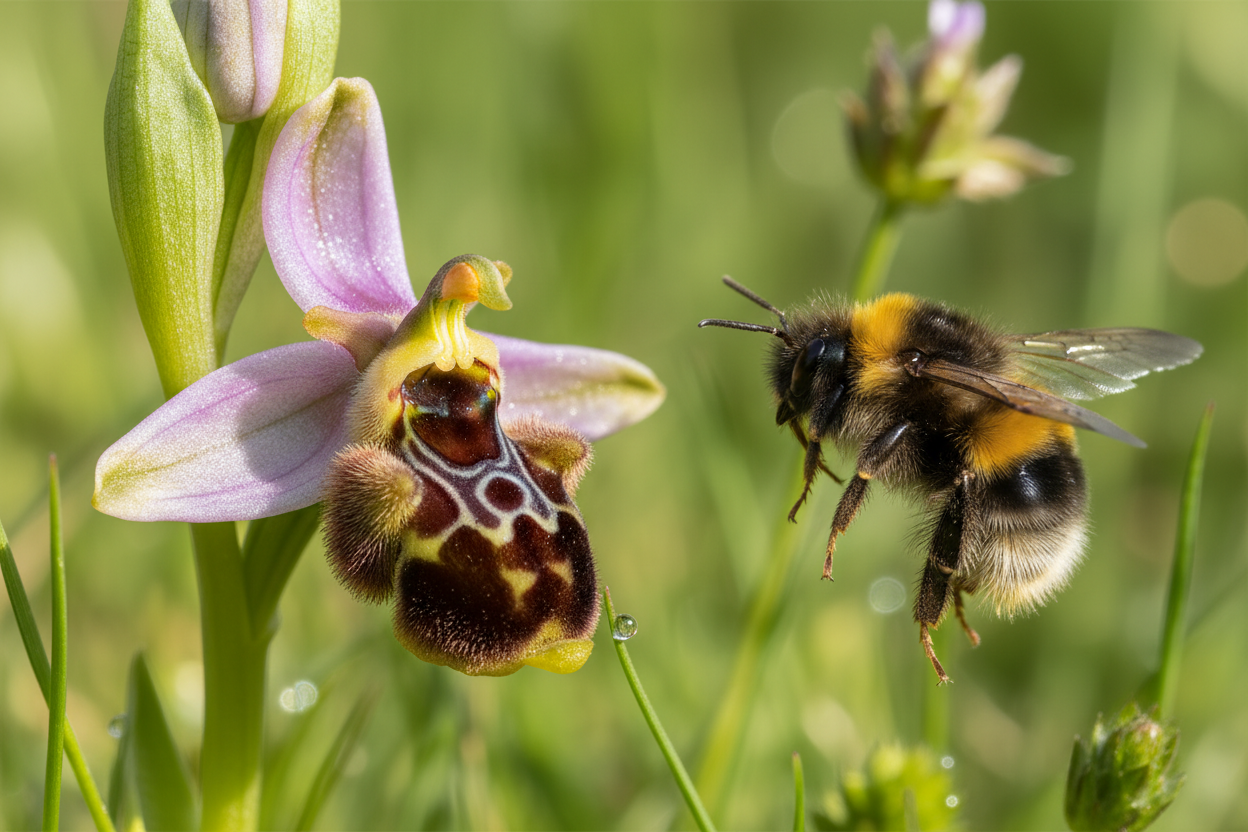Bu orkide, Uçan Ördek Orkidesi gibi taklit yeteneğini bir adım öteye taşır. Çiçeğin yapısı, dişi bir yaban arısına o kadar çok benzer ki, erkek arılar çiftleşme amacıyla çiçeğe konar. Bu “sözde çiftleşme” (pseudocopulation) sırasında arının üzerine yapışan polenler, başka bir çiçeğe taşınır. Doğanın üreme için ne kadar zekice ve karmaşık mekanizmalar geliştirdiğinin en çarpıcı örneklerinden biridir.
