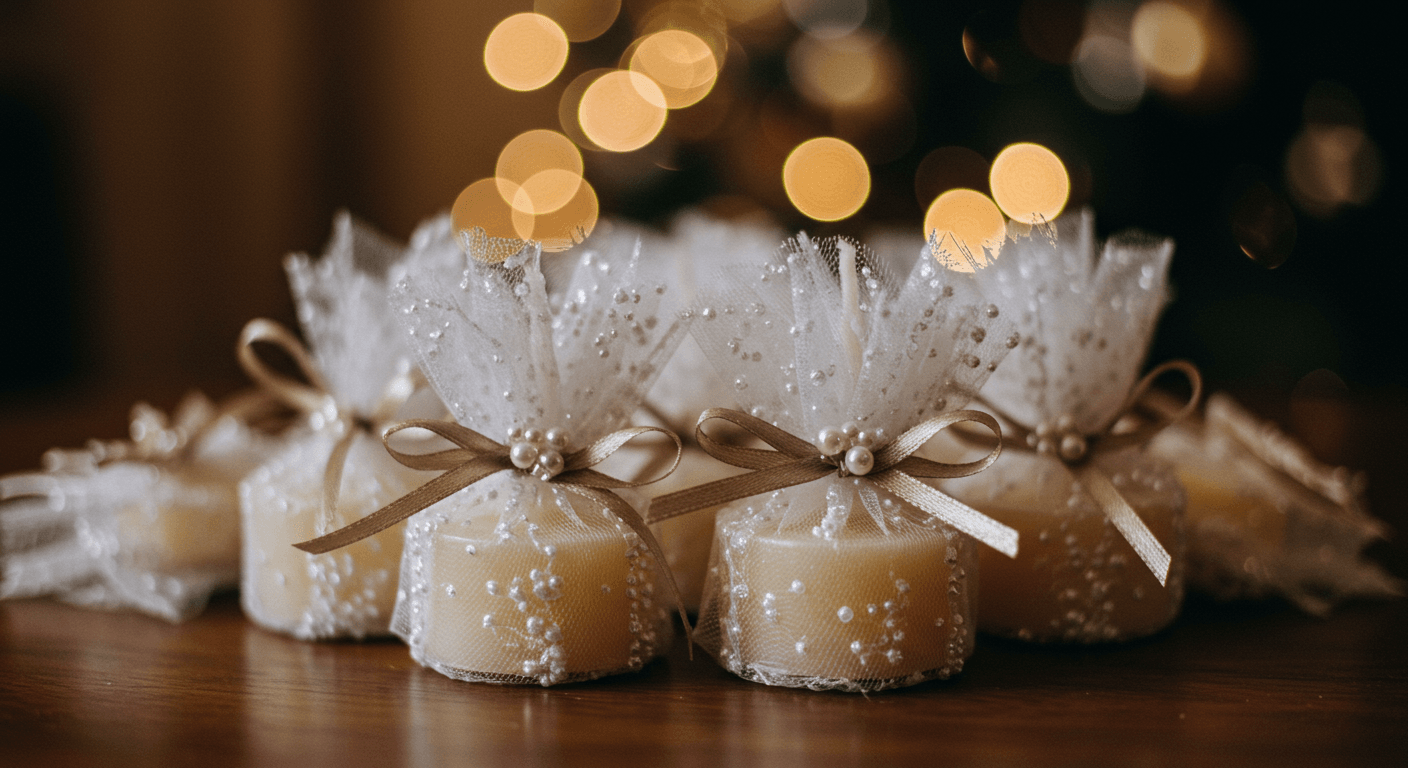 Minik mumlar, hem romantik hem de kullanışlı bir hediyelik seçeneğidir. Farklı kokular ve renklerle kişiselleştirebileceğiniz bu mumları tüllerle süsleyerek zarif bir görünüm kazandırabilirsiniz.