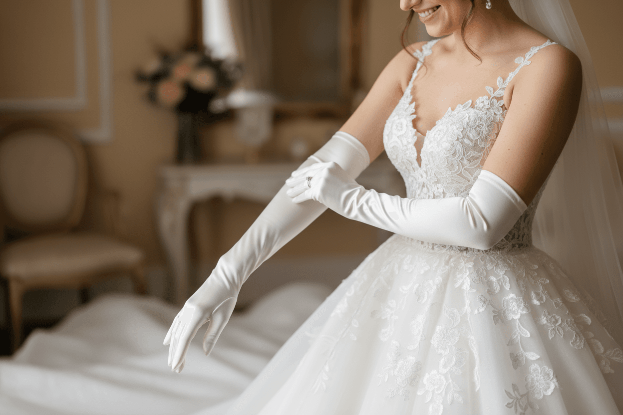 Sadeliğin zarafetine inanan modern gelin adayları için saten ve tül eldivenler vazgeçilmezdir. Pürüzsüz ve parlak dokusuyla saten eldivenler, minimalist ve sofistike bir şıklık sunar. Özellikle opera boyu olarak bilinen uzun saten eldivenler, straplez gelinliklerle birleştiğinde kuğu gibi bir silüet yaratır.