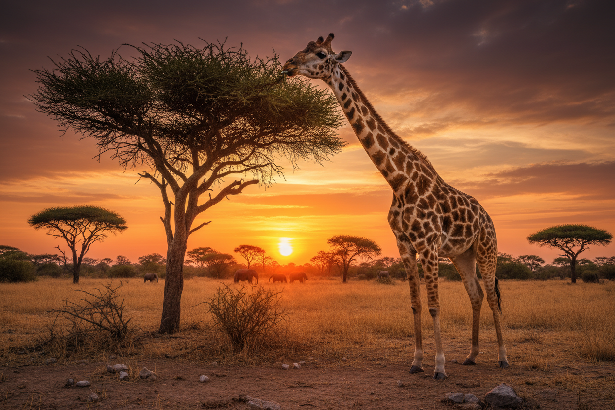 Yaklaşık 5-6 metreyi bulan boyuyla zürafa, dünyanın en uzun hayvanıdır. Yeni doğan bir zürafa yavrusu bile pek çok yetişkin insandan daha uzundur. Yaklaşık 45 santimetre uzunluğundaki dilleri, en yüksek dallardaki taze yapraklara bile kolayca ulaşmasını sağlar. Bu olağanüstü boy, kan dolaşımı için de özel bir adaptasyon gerektirir; kalpleri, kanı beyinlerine pompalayabilmek için son derece güçlüdür. Zürafalar hayatlarının büyük bir kısmını ayakta geçirirler; ayakta beslenir, uyur ve hatta doğum yaparlar.
