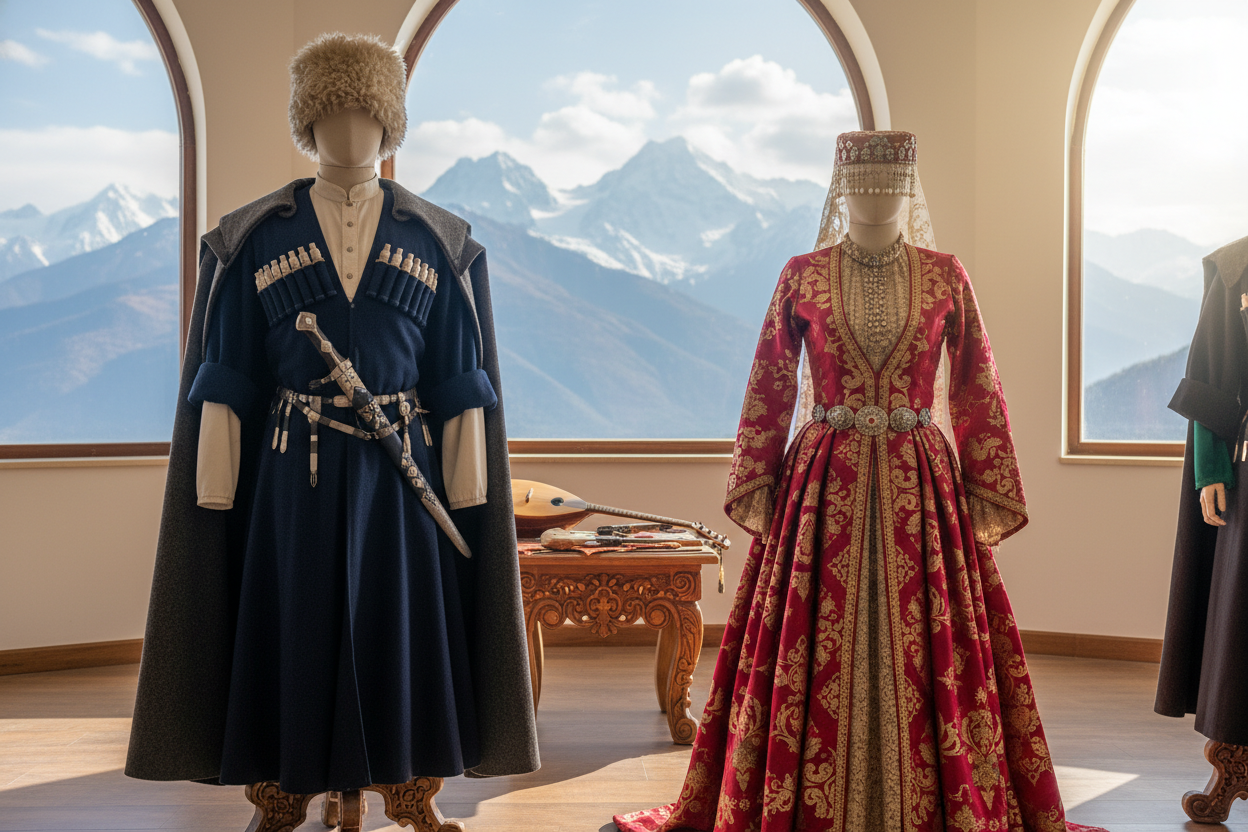 Bu rehberde, Gürcistan’ın kadim giysi geleneklerini, her bir parçanın taşıdığı derin anlamları ve ülkenin enerjik halk danslarının kültürel önemini ayrıntılarıyla keşfedeceksiniz. Gürcü kültürünün kalbine yapacağınız bu yolculukta, yöresel unsurların toplumsal yapıyı ve ulusal kimliği nasıl şekillendirdiğine tanıklık etmeye hazır olun!