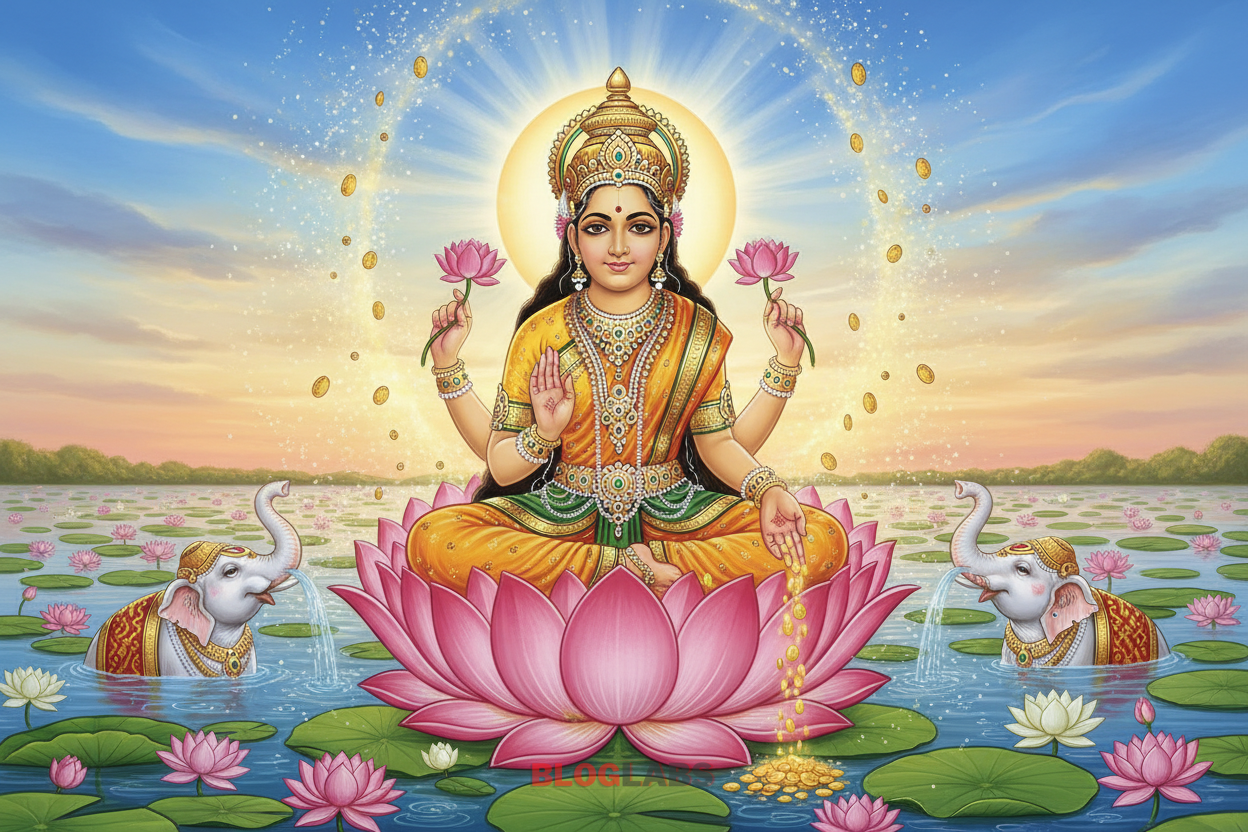 - Lakshmi: Zenginlik, refah ve şans Tanrıçası olan Lakshmi, neredeyse her zaman pembe bir lotus çiçeğinin üzerinde otururken veya elinde lotus demetleri tutarken betimlenir. Bu, onun saflığını, ruhsal zenginliğini ve güzelliğini vurgular.