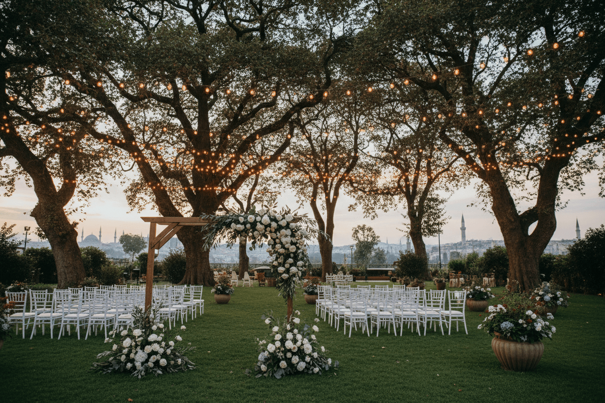 İstanbul’un kalabalığından uzaklaşmak ve tamamen doğanın kucağında “evet” demek isteyen çiftler için kır bahçeleri ve ormanlık alanlar idealdir. Özellikle Sarıyer, Beykoz ve Küçükçekmece gibi ilçelerin saklı kalmış yeşil alanları, muhteşem bohem düğün mekanları sunar. Yüksek ağaçların gölgesinde, kuş cıvıltıları eşliğinde bir seremoni, konseptin doğallık ilkesiyle birebir örtüşür.
