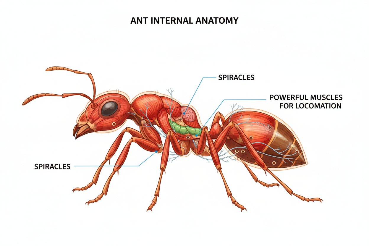 Bir karıncanın vücudu, bizimkinden çok farklı prensiplerle çalışır. Örneğin, karıncaların akciğerleri yoktur. Solunumu, dış iskeletlerinin üzerinde bulunan ve “spirakül” adı verilen küçük delikler aracılığıyla yaparlar. Oksijen bu deliklerden girerek vücutlarına yayılır. Görme duyuları ise pek gelişmemiştir; özellikle yer altında yaşayan türlerin birçoğu neredeyse kördür.