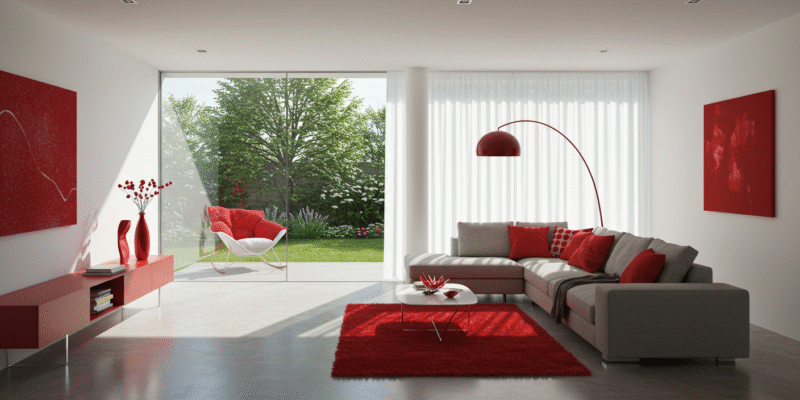 Kırmızı, iç mekan dekorasyonunda kullanıldığında odalara anında enerji ve sıcaklık katan dinamik bir renktir. Ancak bu güçlü rengin dengeli ve bilinçli kullanılması büyük önem taşır. Aşırı kırmızı kullanımı, ortamda baskıcı, gergin veya agresif bir atmosfer yaratabilir; bu da kırmızı rengin insan davranışları üzerindeki olumsuz etkileşimlerinden biridir.