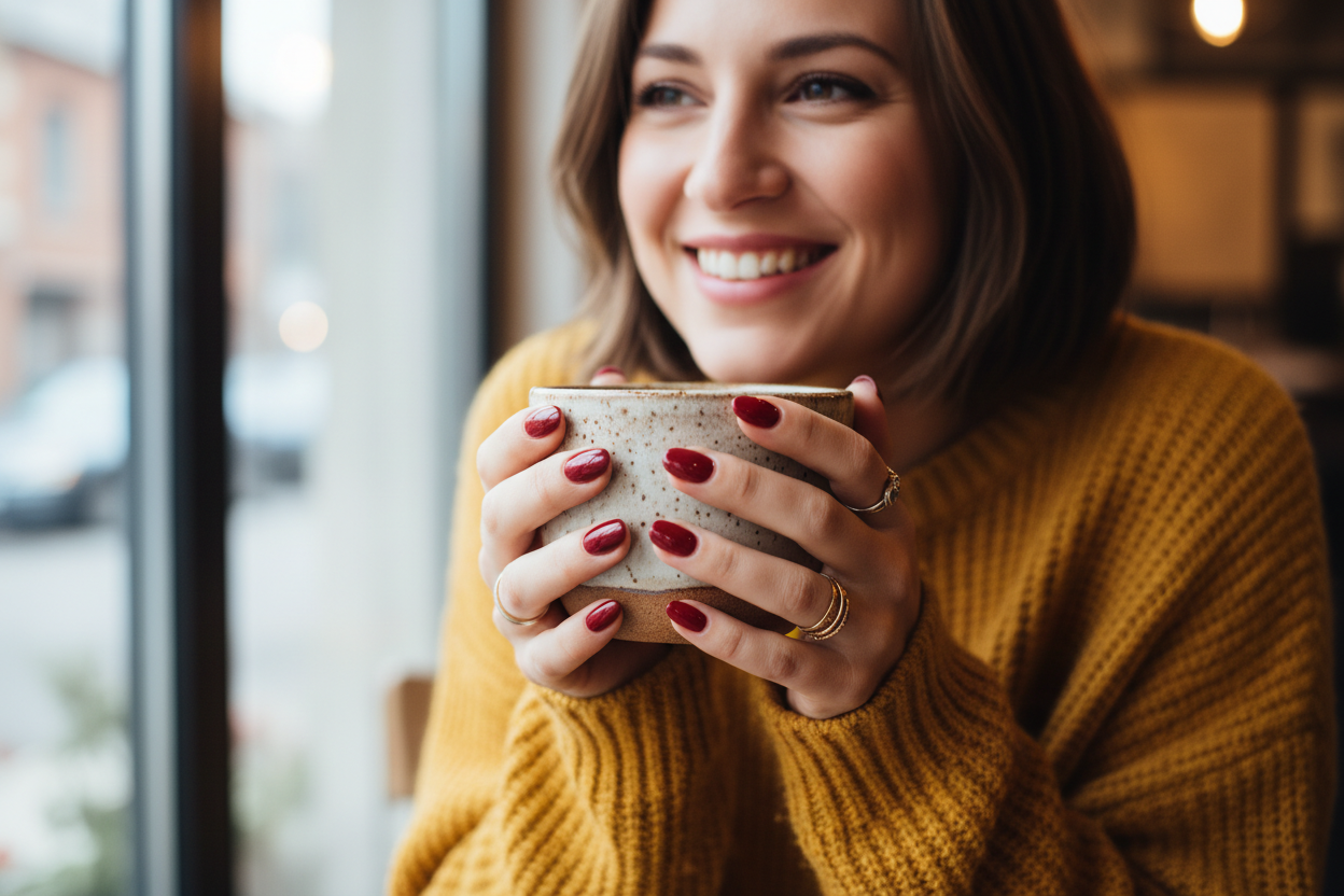 Koyu renklerin kısa tırnakları daha da küçük göstereceği yaygın bir yanılgıdır. Aksine, doğru uygulandığında bordo, mürdüm, lacivert, zümrüt yeşili ve hatta siyah gibi renkler, kısa tırnaklarda son derece modern ve sofistike bir hava yaratır. Bu renkler, tırnaklarınızı bir aksesuar gibi öne çıkararak cesur bir stil ifadesi sunar.