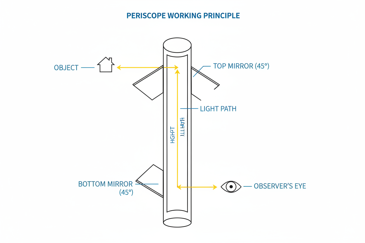 Periskopun çalışma prensibi, ışığın yansıması kuralına dayanan zarif bir sadeliğe sahiptir. Karmaşık gibi görünse de temel mantığı oldukça anlaşılırdır. Işığın gözümüze ulaşana kadar izlediği yol, birkaç temel adımdan oluşur: