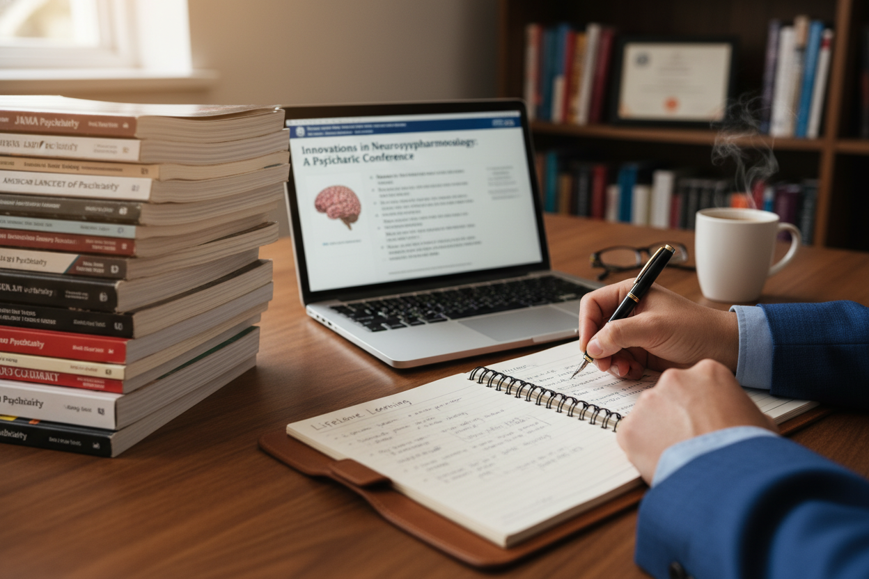 Psikiyatrist olmak, diploma almakla bitmeyen, hayat boyu öğrenmeyi gerektiren bir süreçtir. Alanınızda yetkin ve aranan bir uzman olmak için kendinizi sürekli geliştirmeniz gerekir. Bilimsel makaleleri ve güncel araştırmaları takip etmek, ulusal ve uluslararası kongrelere katılmak, yeni tedavi yöntemleri hakkında bilgi sahibi olmak mesleki gelişiminizin temelini oluşturur.