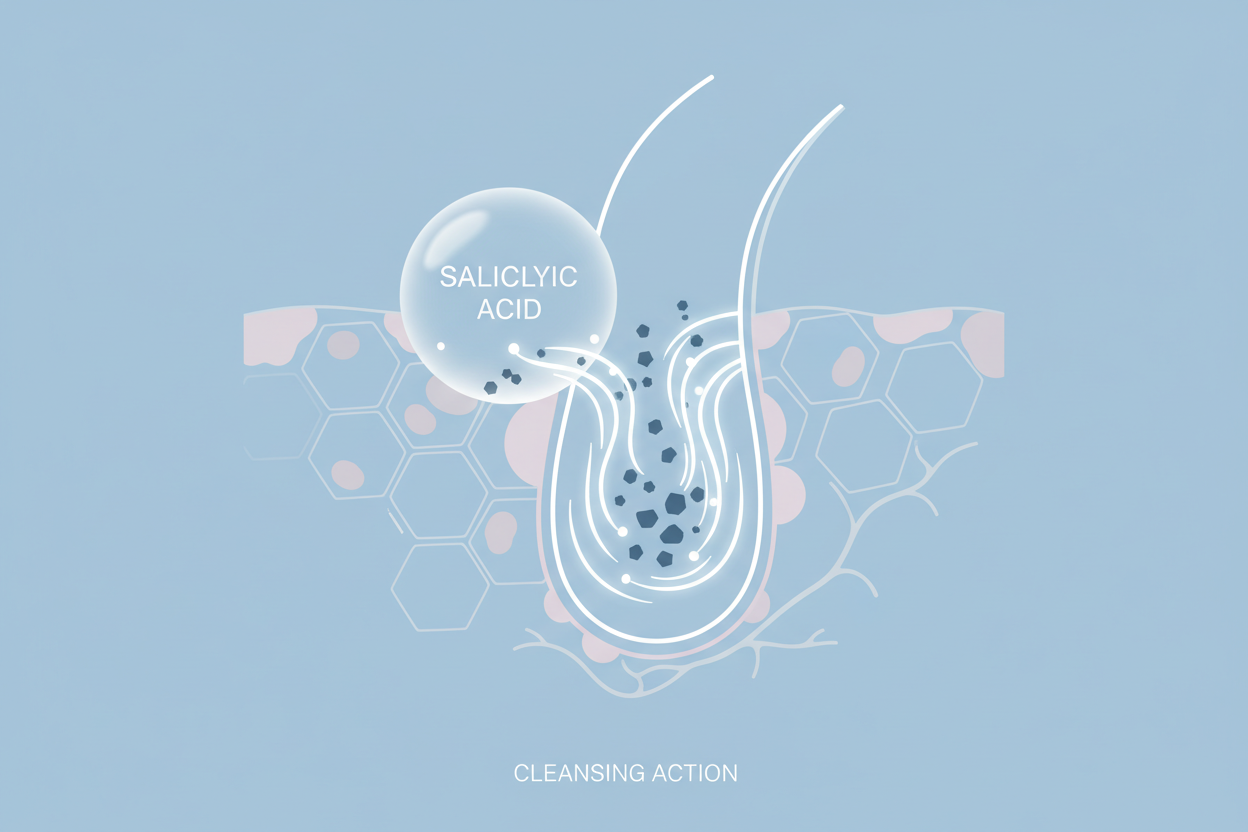 Salisilik asit, bir Beta Hidroksi Asit (BHA) türüdür ve cilt bakımında onu vazgeçilmez kılan en temel özelliği yağda çözünebilir olmasıdır. Çoğu asit (AHA’lar gibi) suda çözünürken, salisilik asit cildin doğal yağı olan sebumun içinden geçerek gözeneklerin derinliklerine nüfuz edebilir. Bu eşsiz yeteneği, onu yüzeyde kalan ölü deriyi temizlemenin ötesine taşıyarak, tıkanmış gözeneklerin asıl kaynağına inmeyi sağlar. Bu sayede cilt problemlerini daha oluşmadan engellemeye yardımcı olur.