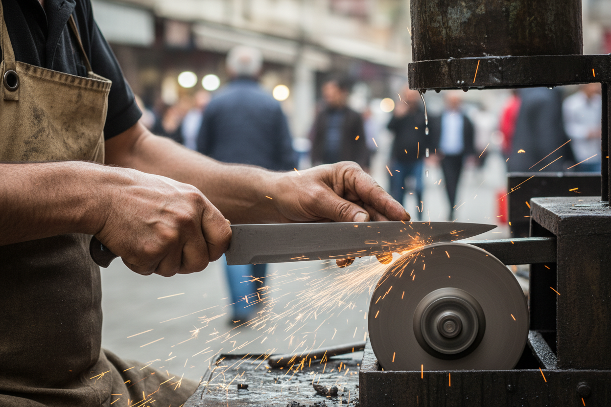 - Bileyici: Tekerlekli, pedallı ve taşlı tezgahıyla sokakları arşınlayan bileyiciler, körelmiş bıçak ve makasların kurtarıcısıydı. Çarkın dönme sesi ve taştan çıkan kıvılcımlar, özellikle çocuklar için büyüleyici bir manzaraydı. Dakikalar içinde en kör bıçağı bile jilet gibi keskin hale getirirlerdi.