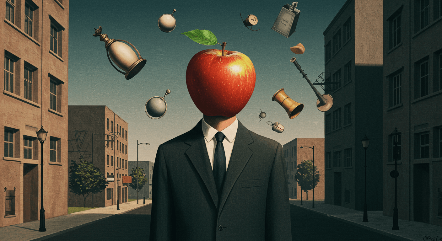 - Gerçek ve Hayalin Birleşimi: Tanıdık nesneler fantastik bağlamlarda yer alır, örneğin bir elmanın gökyüzünde uçması gibi.