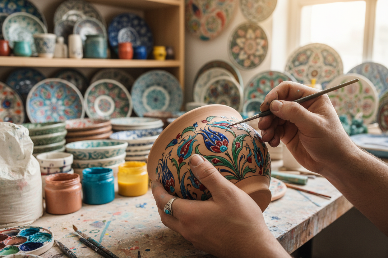Türk el sanatları, bu kültürün estetik ruhunu ve yaratıcılığını yansıtan en önemli unsurlardandır. Halı ve kilim dokumacılığı, çini sanatı, bakır işlemeciliği ve ahşap oymacılığı gibi zanaatlar, yüzyıllardır nesilden nesile aktarılan değerli bir mirastır. Bu sanatlar, sadece estetik birer obje olmanın ötesinde, taşıdıkları semboller ve motiflerle derin kültürel anlamlar barındırır.