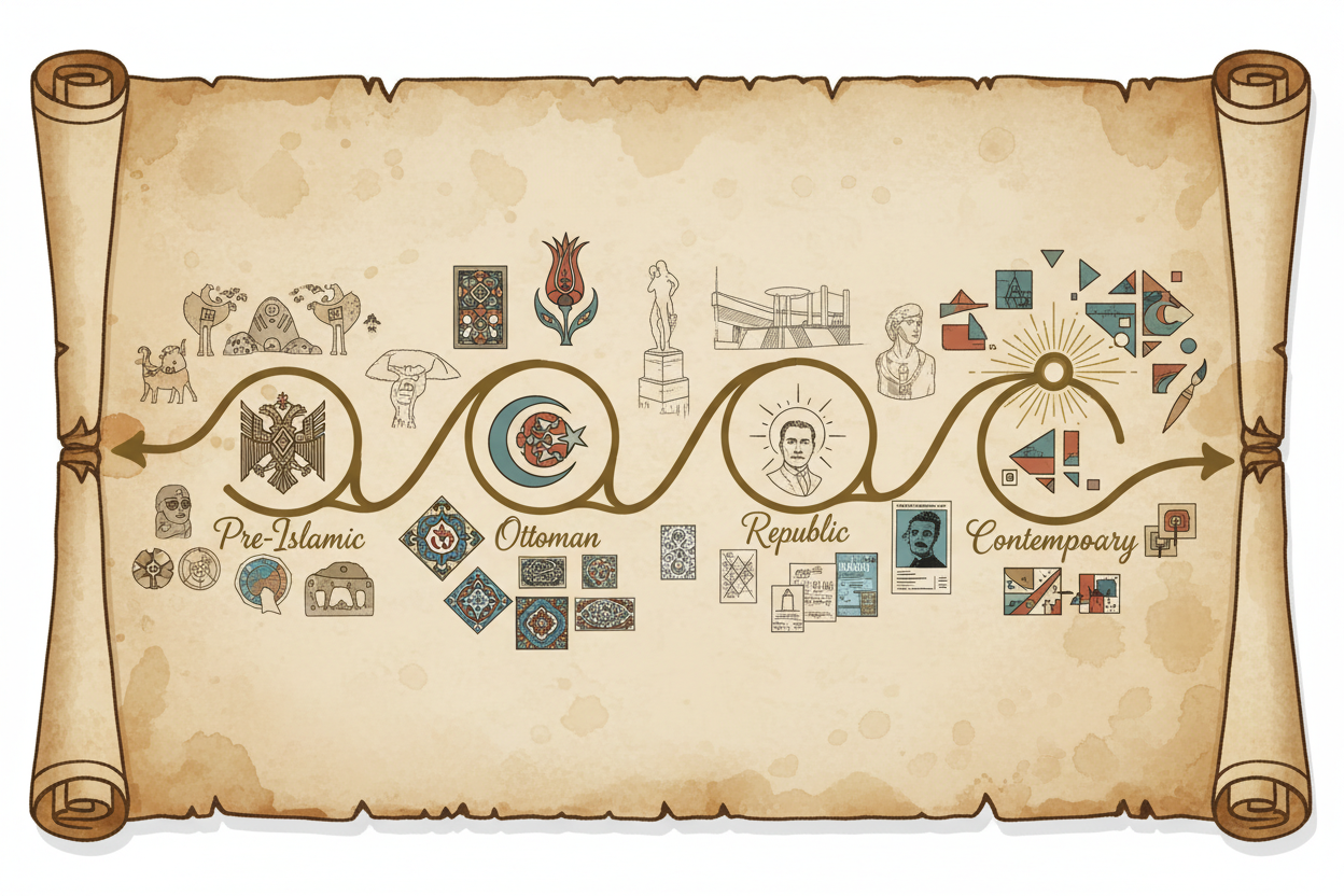 Bu sanat, Anadolu’nun kadim medeniyetlerinden Orta Asya’nın göçebe kültürüne, Selçuklu ve Osmanlı İmparatorluklarının ihtişamından Cumhuriyet’in modernleşme arayışlarına kadar uzanan bir süreklilik arz eder. Bu süreçte hem yerel estetik değerler korunmuş hem de dış etkileşimlerle yepyeni sentezler yaratılarak Türk resim sanatının eşsiz karakteri oluşturulmuştur.