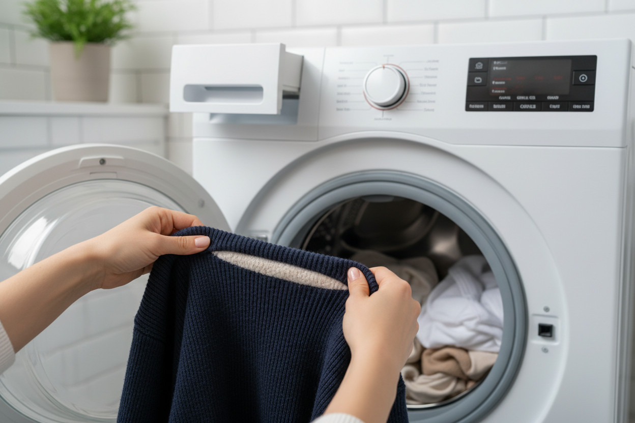 - Giysileri Ters Çevirin: Yıkama sırasında dış yüzeyin sürtünmesini azaltmak için tüm giysilerinizi, özellikle tüylenmeye meyilli olanları ters çevirin.