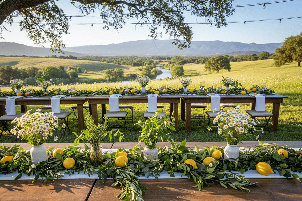 Yaz ve ilkbahar düğünleri için doğanın canlılığından ilham alabilirsiniz. Deniz temalı bir düğün, sahil kenarında evlenecek çiftler için vazgeçilmezdir. Deniz kabukları, yıldızları, çapalar ve mavinin her tonuyla ferah bir ortam yaratılabilir. Limon konseptli bir düğün ise sarının enerjisini ve tazeliğini mekana taşır. Yeşil yapraklarla birleşen limonlar, hem dekorasyonda hem de ikramlarda kullanılabilir. Papatya teması ise saflığı ve neşeyi simgeler; kır düğünlerine en çok yakışan, samimi ve cıvıl cıvıl bir seçenektir.
