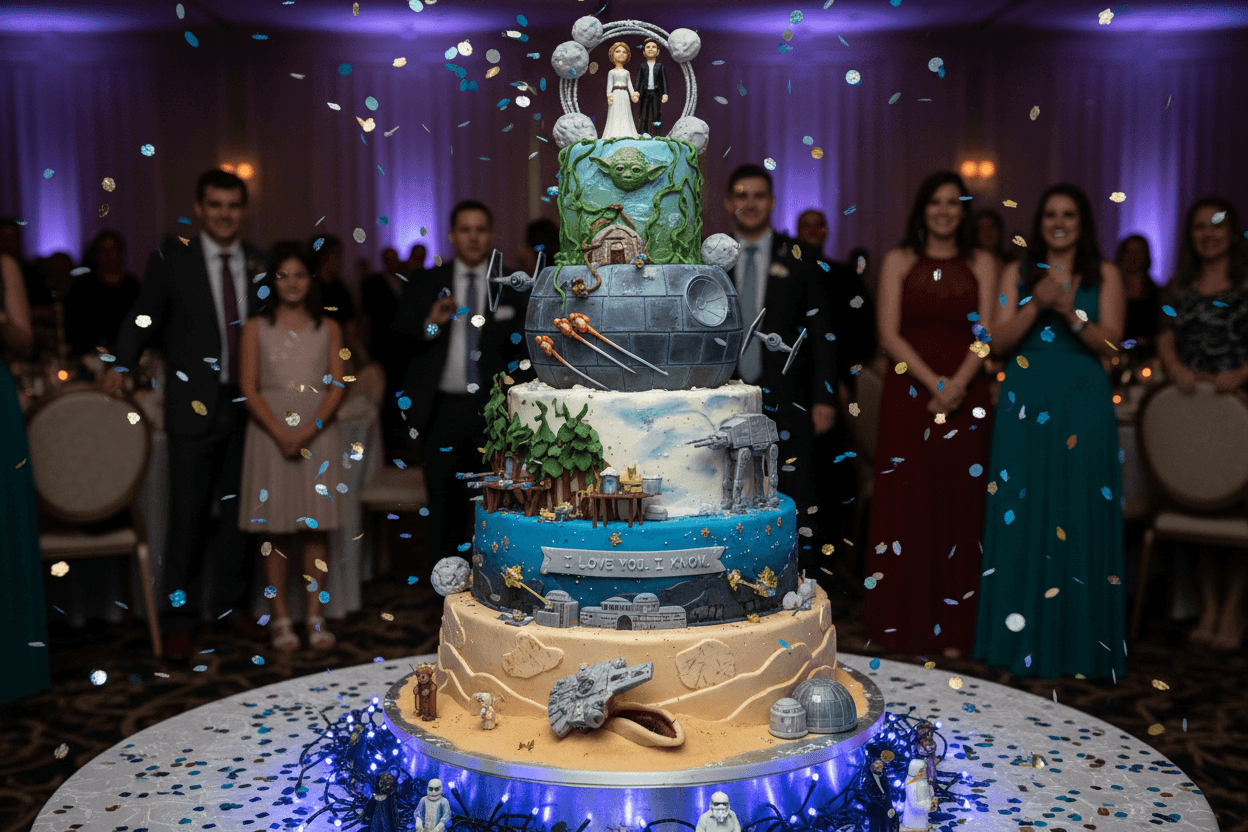 Sinema tutkunu bir çiftseniz, en sevdiğiniz filmi düğün temanız yapabilirsiniz. “The Great Gatsby” temasıyla 1920’lerin ışıltılı partilerini canlandırabilir, “Star Wars” konseptiyle galaksiler arası bir kutlama yapabilir veya “Harry Potter” temasıyla misafirlerinizi büyülü bir dünyaya davet edebilirsiniz. Film ruloları, patlamış mısır kutuları, klaketler gibi sinematik objeler dekorasyona kolayca entegre edilebilir. Kitap kurtları için ise en sevdikleri romanın dünyasını yaratmak veya kitapları dekorasyonun bir parçası olarak kullanmak harika bir fikirdir.
