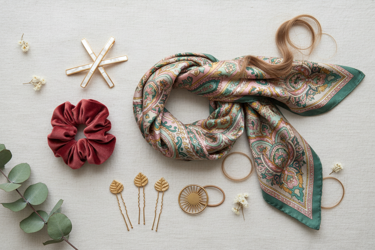 En basit yarım topuzu bile bir anda bambaşka bir havaya sokmanın en kolay yolu aksesuar kullanmaktır. İpek bir fular, büyük bir saten toka (scrunchie), zarif metal klipsler veya inci detaylı tokalarla modelinizi zenginleştirebilirsiniz. Seçeceğiniz aksesuar, kıyafetinizle uyum içinde olarak stilinizi tamamlayacaktır.